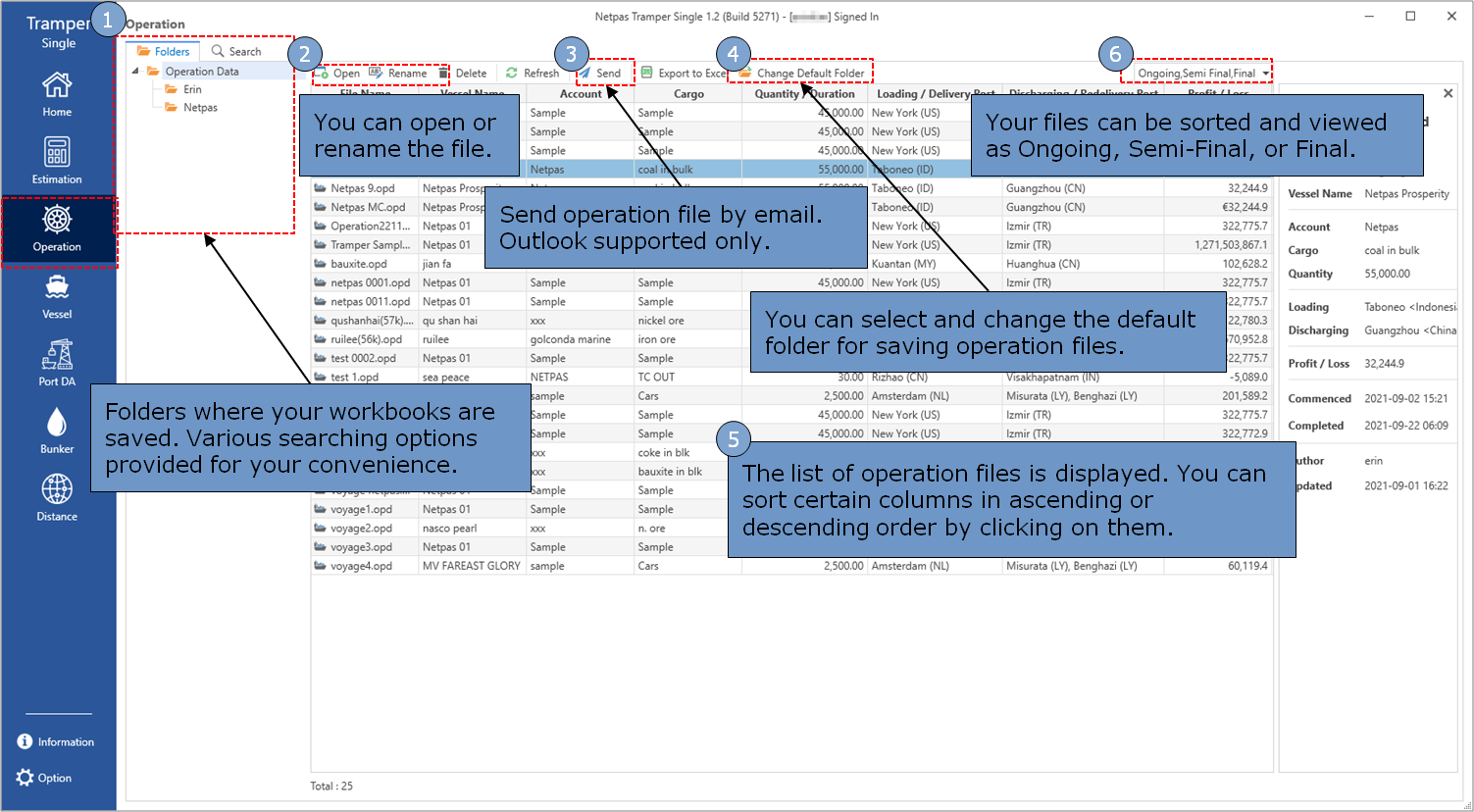 You can see your operation files and sort them as you want.