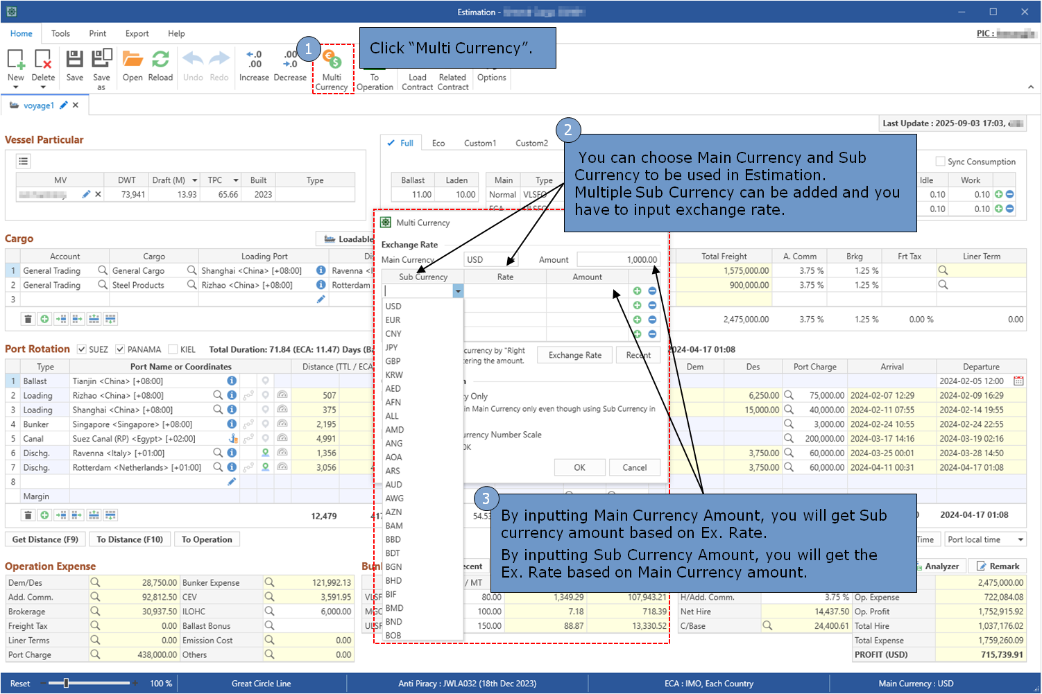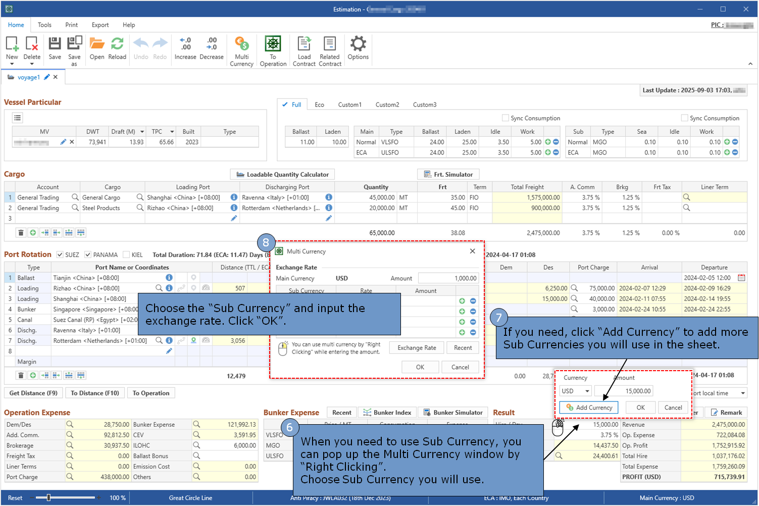 You can use the sub currency besides the main currency for certain items in Estimation and Operation.