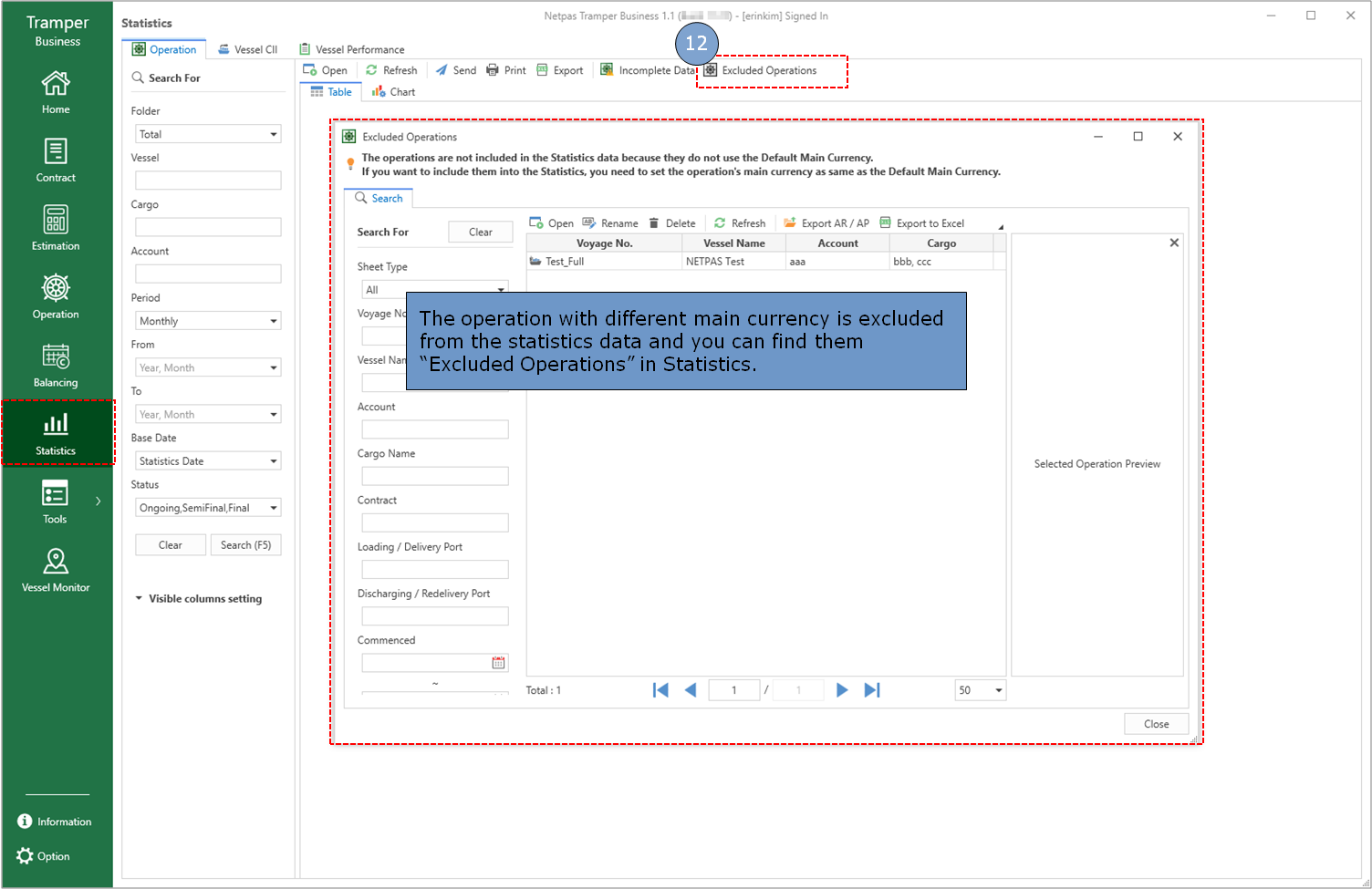If the main currency in Operation is not the same as the Default Main Currency, the operation will be excluded from your Statistics data.
